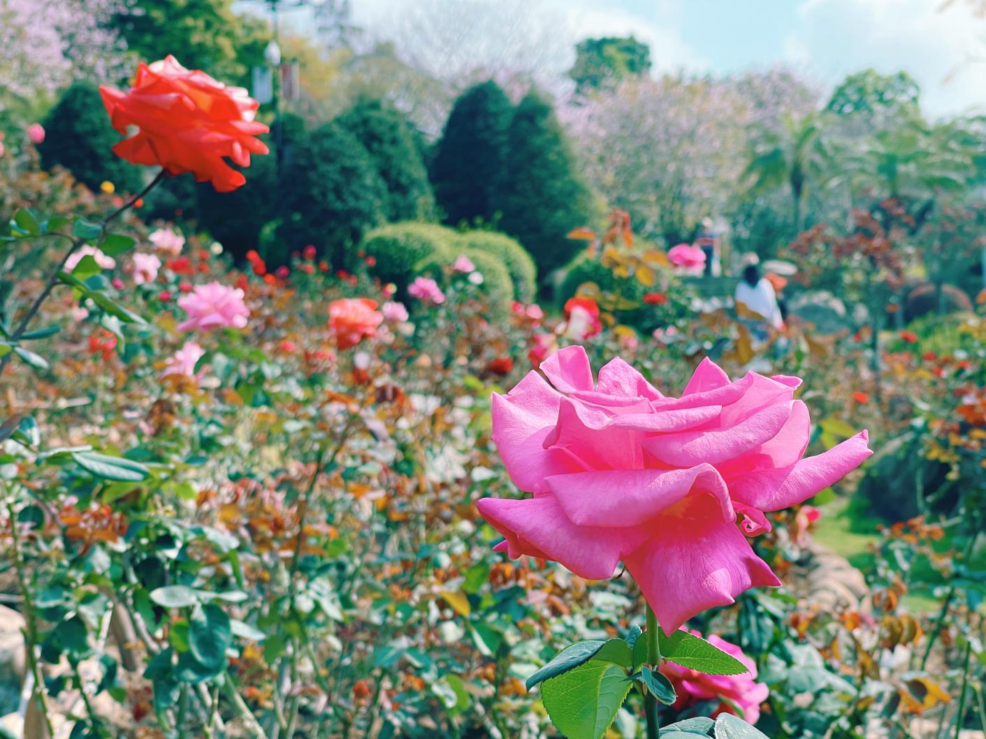 最浪漫的春天必定是畅游玫瑰花海,云台花园以花闻名,四季常开的玫瑰花园在春天更奇斗艳,经过专家团队培育改良,园内呈现的是比普通品种优良的大花玫瑰,红玫瑰热情似火,粉玫瑰娇羞柔弱,花香幽静芬芳,带来视觉和嗅觉的双重冲击,春风十里,云台玫瑰花海等你来!