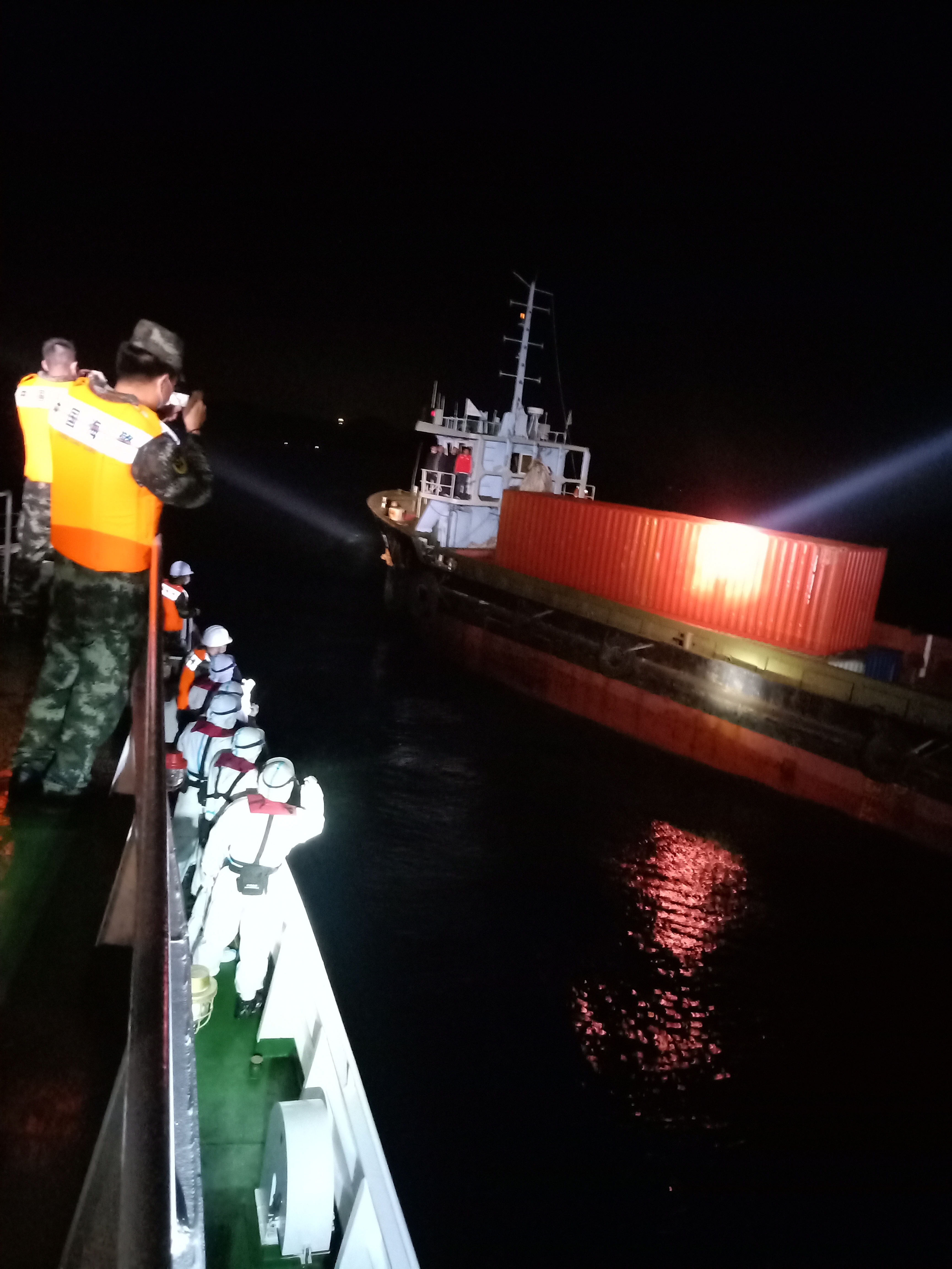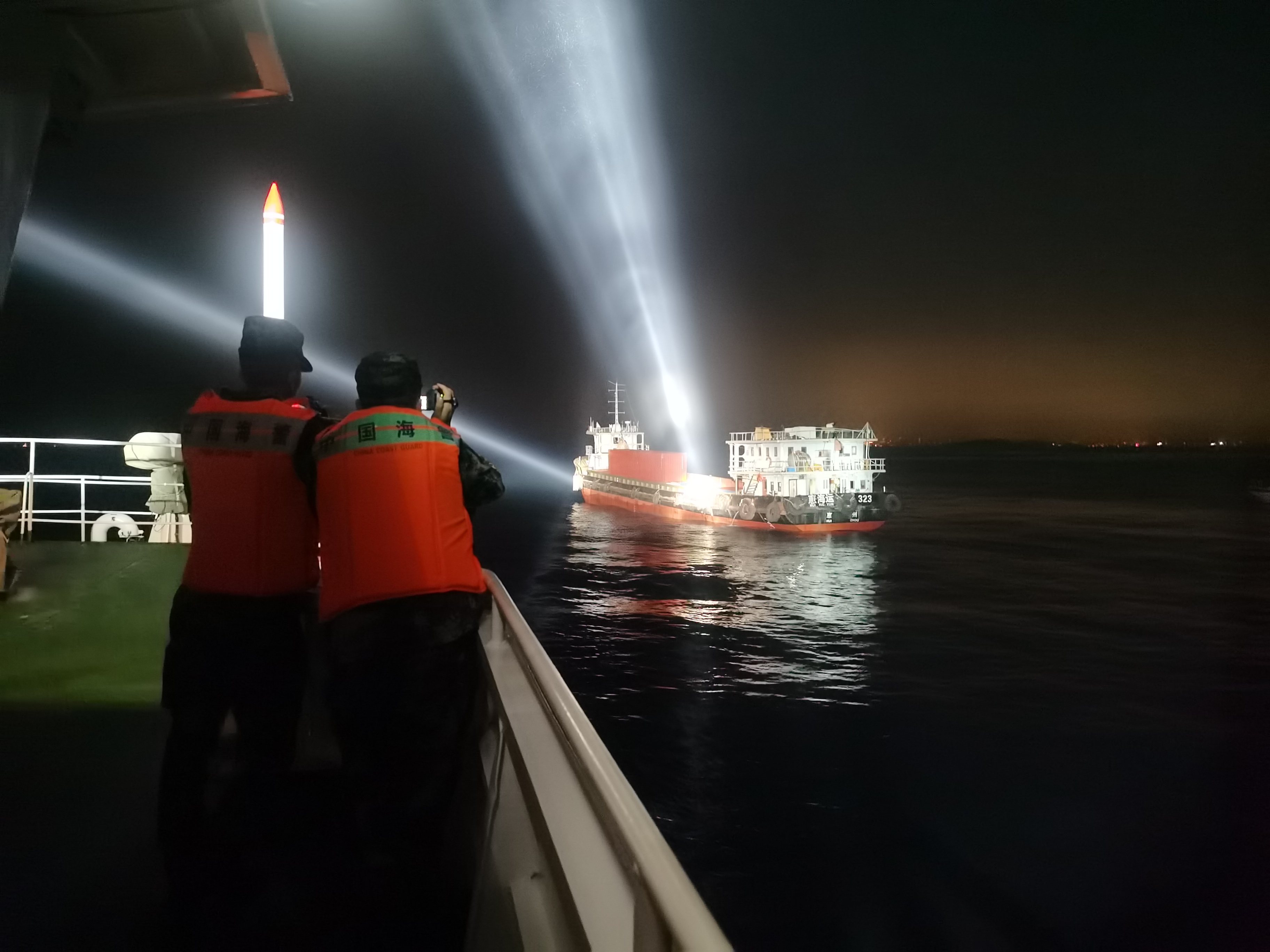 当日22时许,该局根据线报派出执法艇前往珠海大小蜘洲以南海域进行巡逻,发现一艘从境外驶出且未打开AIS的船舶,形迹可疑,执法艇当即前往查缉。当靠近目标船只时,执法员迅速对其喊话,要求该船停船接受检查。