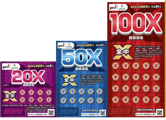 面值5元、10元、20元玩法简单明了,头奖分别为20万元、50万元、100万元。
