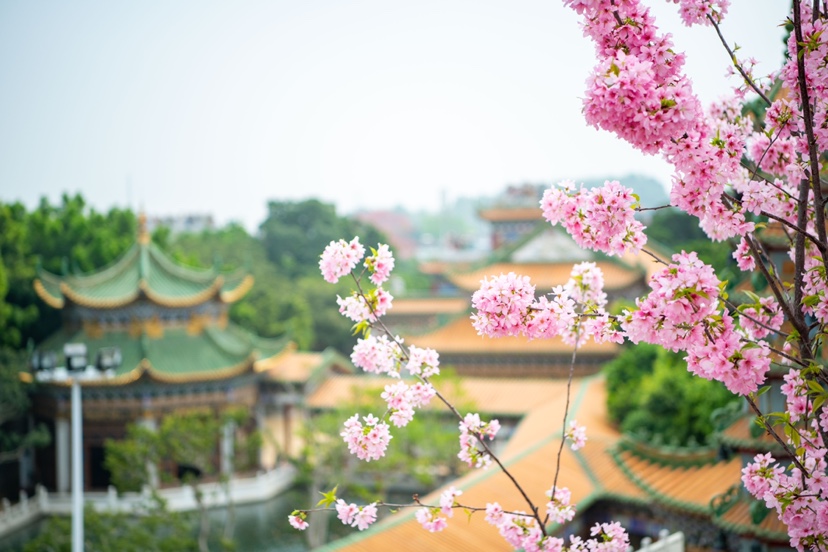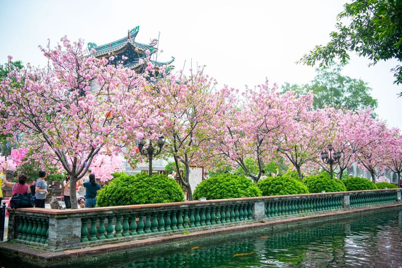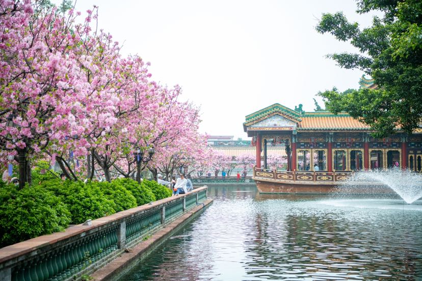 今年樱花节赏樱路线进一步提升,由“一园留香”到“两园争艳”,赏樱景观从宝墨园的湖边水畔一直延伸到南粤苑的山峦亭榭,双园共同形成了番禺独一无二的“湖光山色”绝美赏樱格局,惊艳禺山大地。