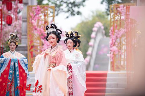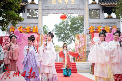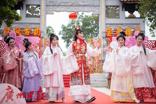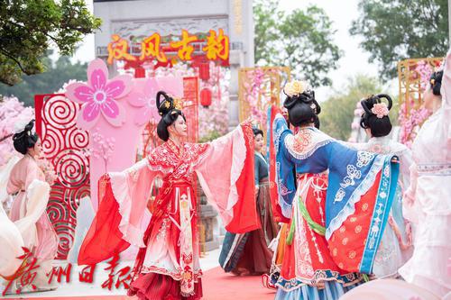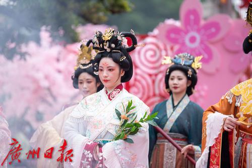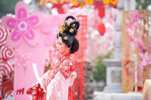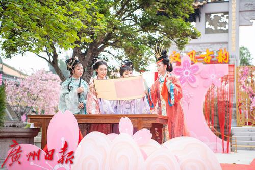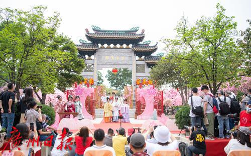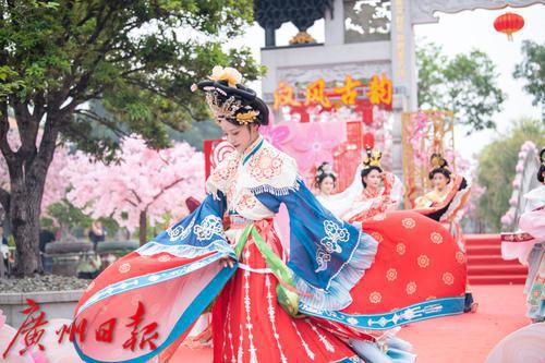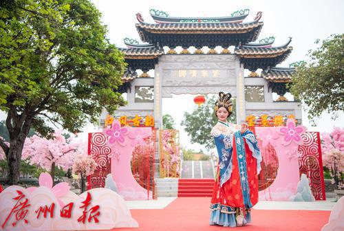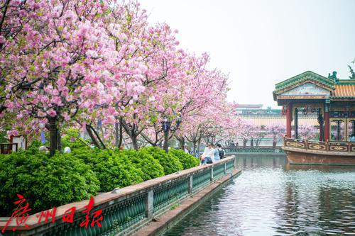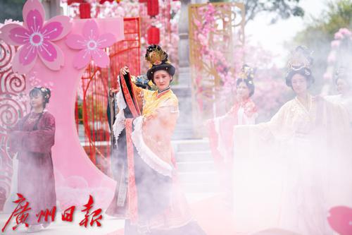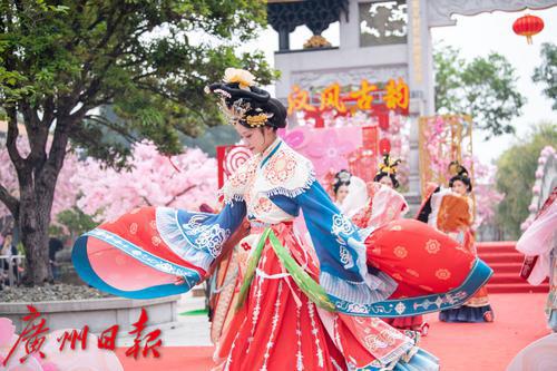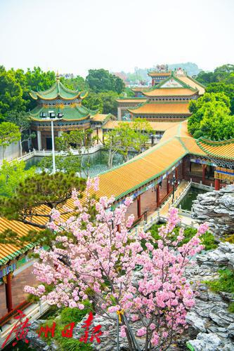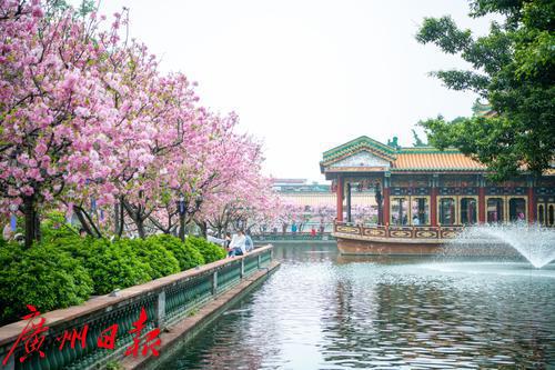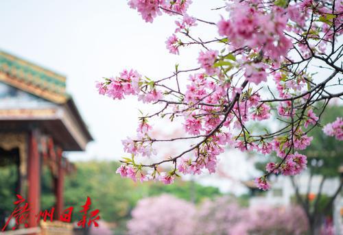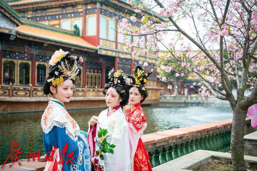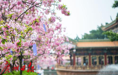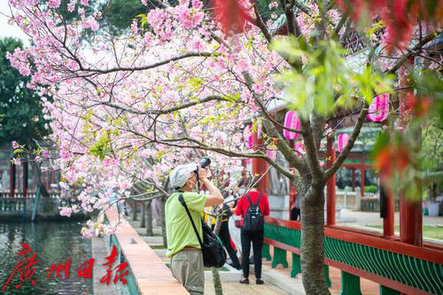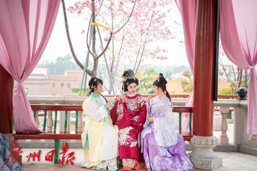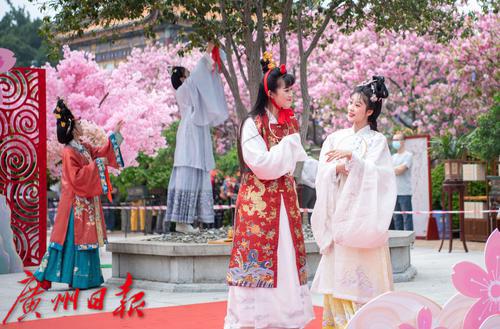 在广州番禺古典园林宝墨园,缤纷浪漫的樱花在亭台楼阁旁热烈绽放,拉开“岭南古邑”的春日序曲。3月19日,2022年宝墨园“汉风古韵樱花节”开幕,为游客们带来樱花古建与华美汉服交相辉映的视觉盛宴。