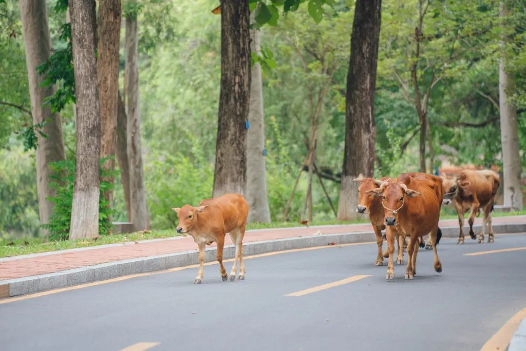 “它们每天都走同一条路,对路线已经很熟悉了。”林叔说。据他回忆,牛群中最年长的已经在华农待了起码有八年。从林叔最开始在华农校道上放牛,牛群已经历经三代,数量从6头壮大到11头。因为常年与华农师生、居民相处,它们都养成了温顺、不惧人的性情。华农校园得天独厚的环境给予它们甜美的鲜草与温暖的阳光,它们也以长久的陪伴成为华农的标志之一。