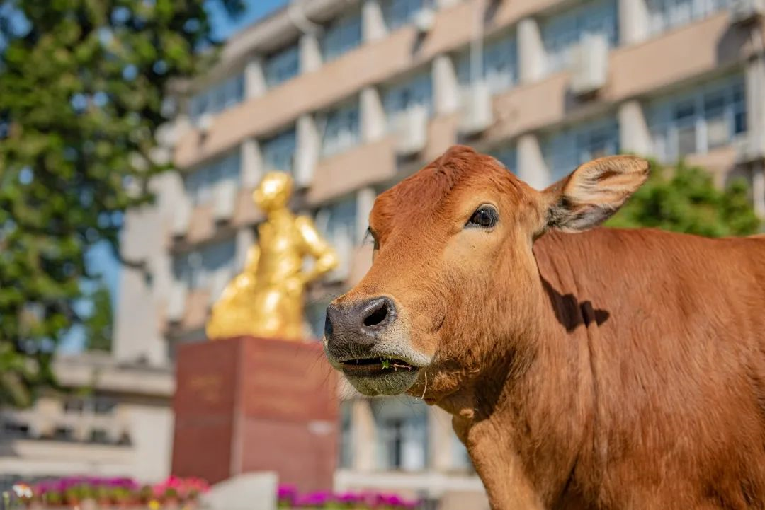 在课上,学生们以牛为友,训练兽医临床诊疗基本操作技能,不少兽医学院的学生还以其为毕业论文研究对象。在课下,学生们会轻抚性情温和的牛,与它们合影留念。兽医学院的叶同学表示,自己仍记得在《兽医临床诊疗技术学》实验课上第一次听到牛的胃肠蠕动音的场景。“一开始接触它们时是兴奋大于害怕的。一方面是因为牛牛性格温顺,另一方面是因为学院有专业的保定措施,实践过程非常安全。”叶同学表示,相比起只在牛舍饲养,在草坪上放牛更有利于牛群的生长繁殖和身心健康。