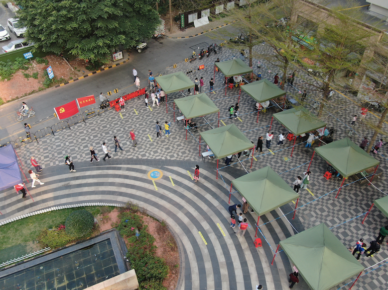 “我在这里排了半小时就做完了,整个流程指引非常清晰。”居住在花语水岸的王先生说。此外,对于老年人、小孩、孕妇等群体,街道还特意开设绿色通道,由工作人员带领其到指定点完成采样。