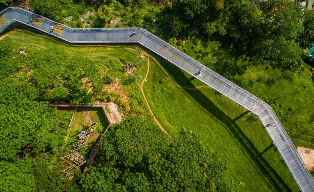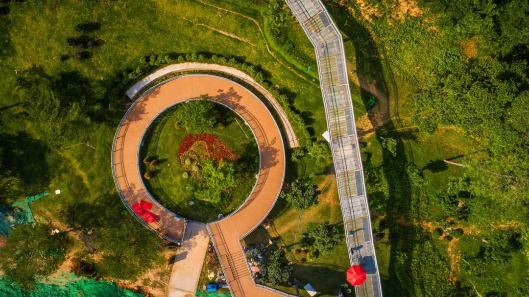据悉,这个被定义为慢行系统的生态廊道全程约共8公里,其中接连各公园的路段均悬于空中,是以被形象地赋予“空中云道”的美称。
