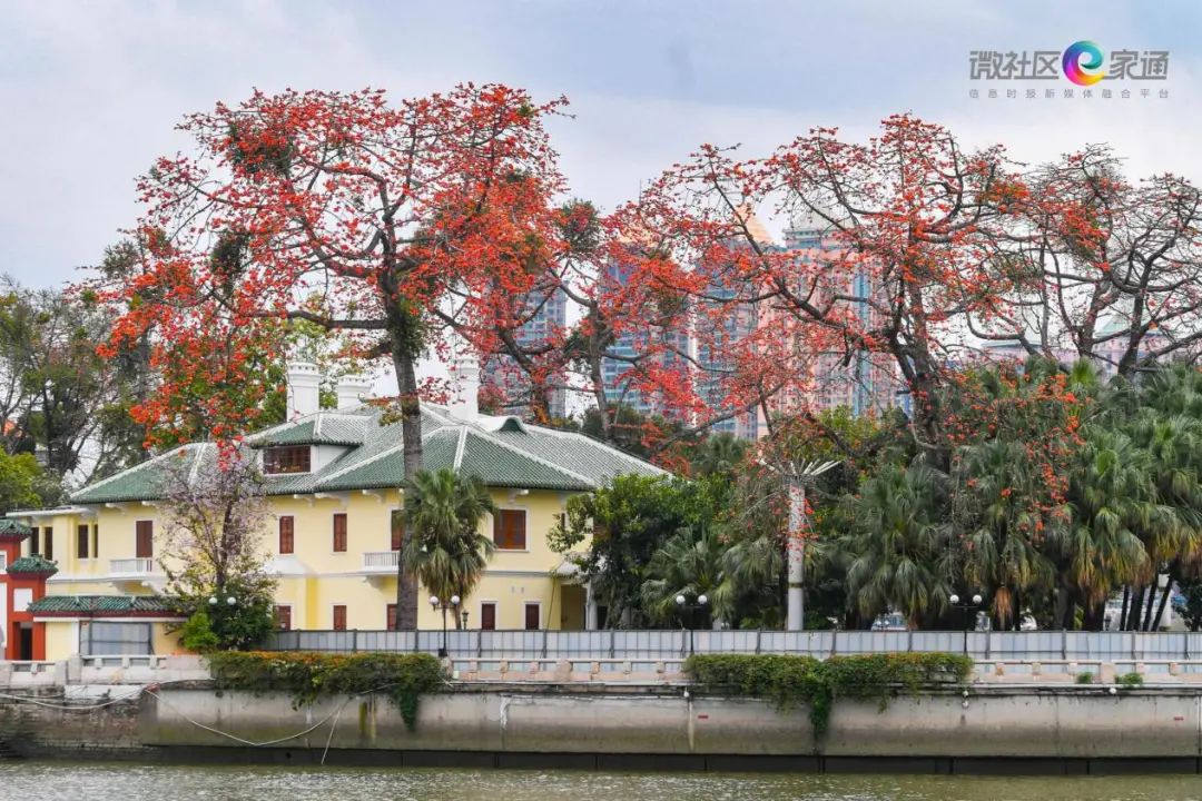 午后的沿江东路,阳光明媚,繁花盛放。珠江碧波荡漾,清水潺潺,白鹭低空飞翔,对岸的木棉花开灿烂,绘就了一幅灵动秀美的春光美景图。