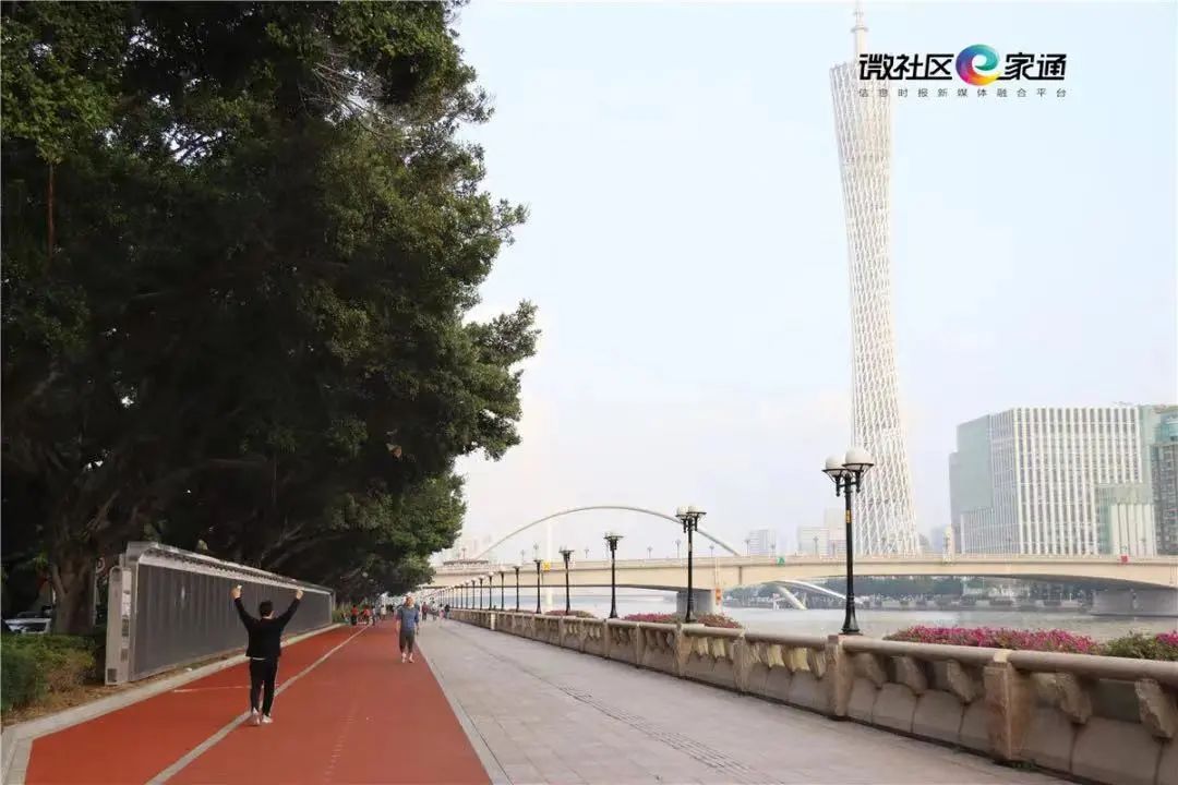 珠江碧道为运动爱好者提供了跑步锻炼的场地,街坊们还可以沿着碧道在江边漫步。