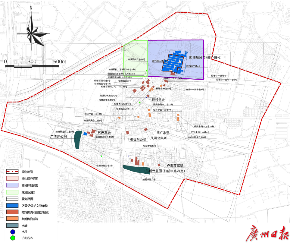 近日,《广州市白云区园伟庄传统村落保护发展规划》在市规划和自然资源局网站上进行征询意见公示。其中提出,重点保护园伟庄内部传统风貌尚存且保存质量较好的核心建筑群,规划范围内新建、扩建、改建建筑高度控制在30米以下。