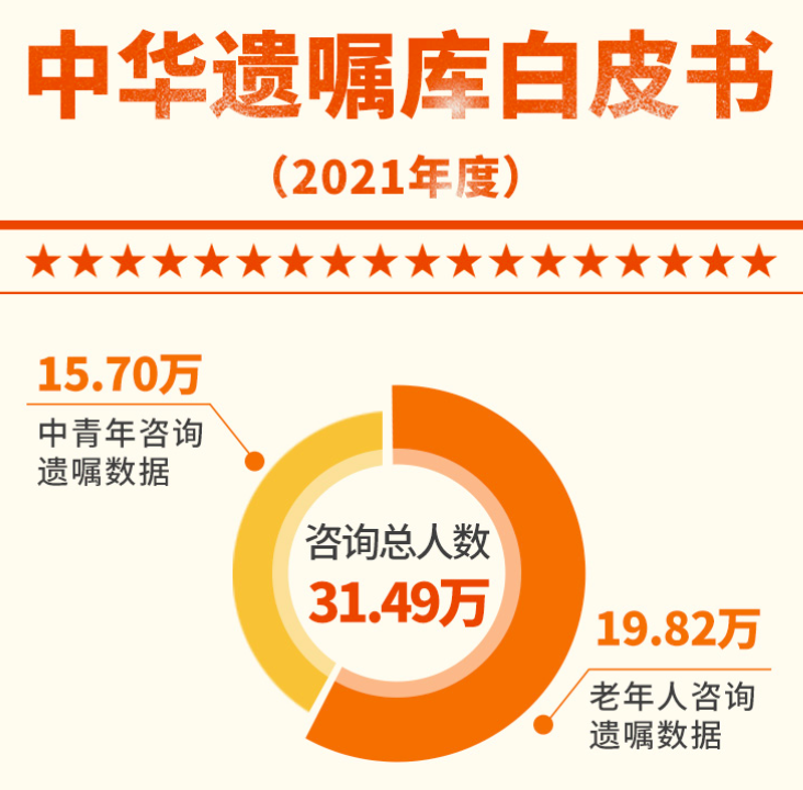 3月21日,中华遗嘱库正式发布《2021中华遗嘱库白皮书》(以下简称“白皮书”)。经过对已经入库的22万余份遗嘱进行分析,折射出生命价值观之变。