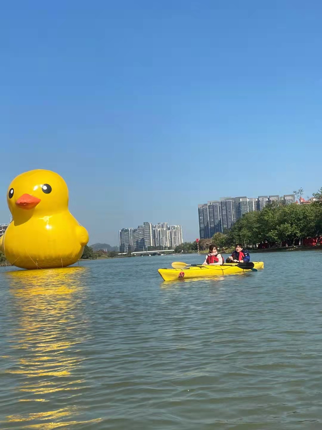 对于零基础的新手来说,皮划艇非常容易上手,若是划累了,也可以就地停下来歇息。晒着暖烘烘的太阳,在皮划艇上随着河波荡漾,一路欣赏水清岸绿的美景,可以跟岸上散步、钓鱼的人们打招呼,可以和小黄鸭合个影,十分舒适惬意。