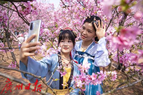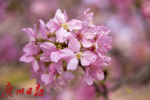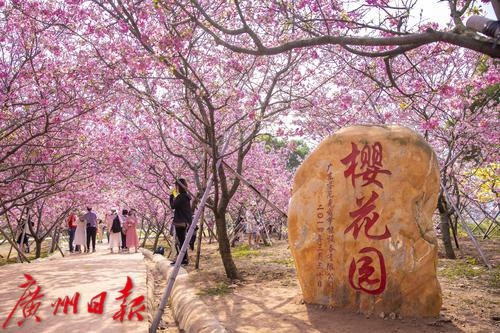 十八罗汉山森林公园樱花园成了粉红色的海洋。