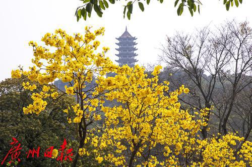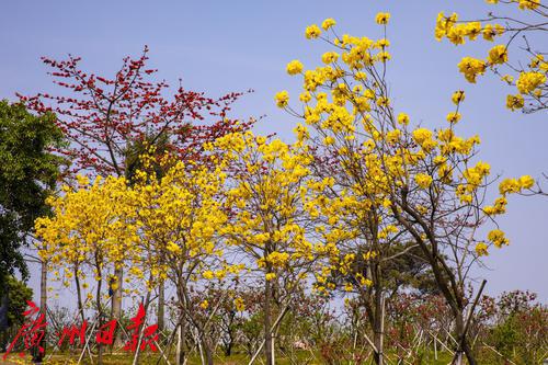 十八罗汉山森林公园黄花风铃木和木棉花盛放。