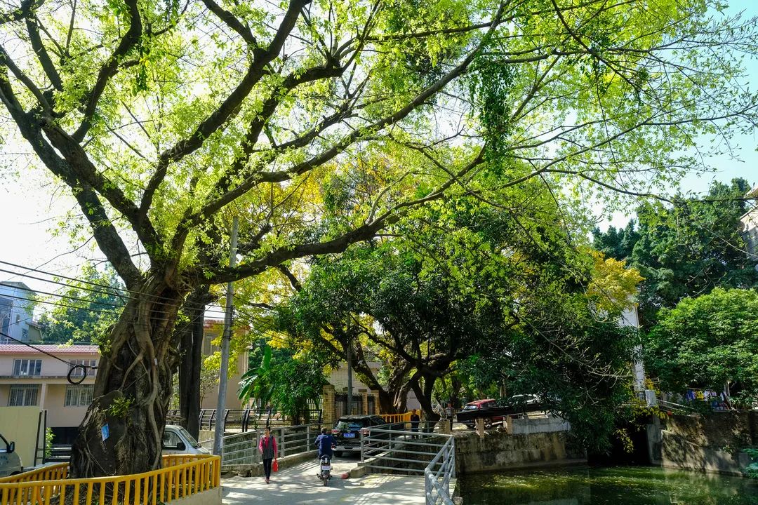 南漖村里共有7棵被相关林业部门认定的古树名木,它们紧靠河涌两旁生长。夏天为村民们撑起一片绿荫,秋天又洒下一地金黄。