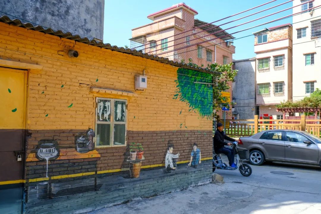 往村落深处走去,两旁的房屋墙面上,增添了别具岭南水乡特色的墙绘。居住在此的居民,不管是来自天南海北,都能在这熟悉的画面里,回想起自己美好的童年。