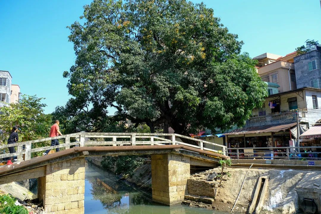 老桥旁的参天古木,是一棵香香甜甜的芒果树,当果实缀满枝头的时候,走在老桥上伸手就能摘下一个汁水满溢的芒果,这就是南方盛夏的气息。
