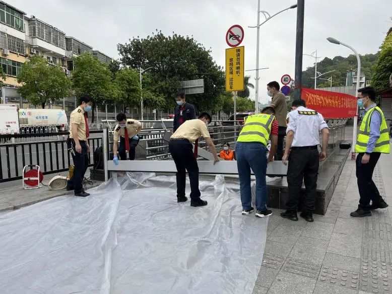 地铁站外进行围蔽、疏导。