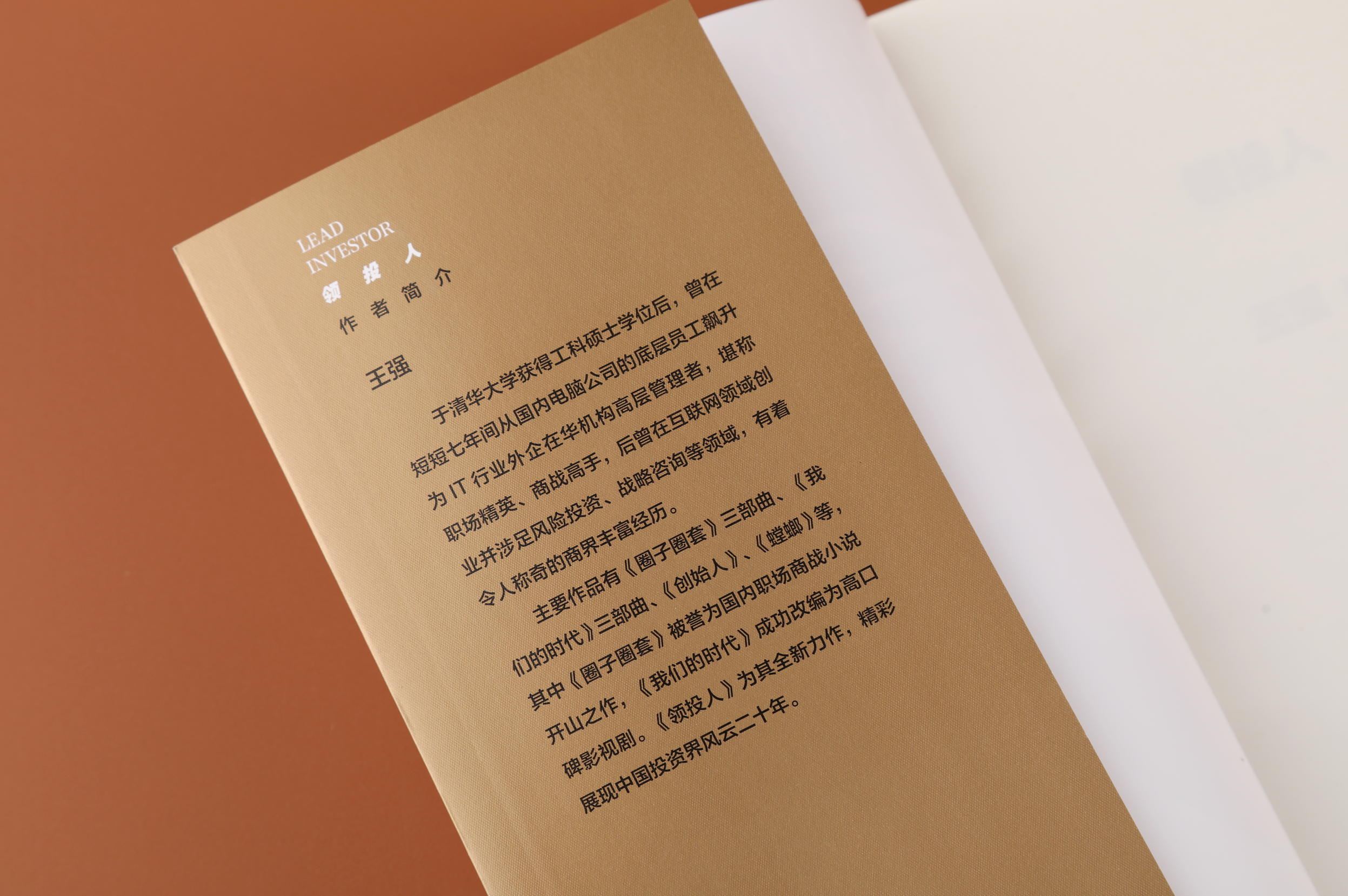 王强:我之前的另外几部作品包括《圈子圈套》、《创始人》、《螳螂》的影视改编权都已经授权给了不同的影视公司,目前虽然进展有快有慢但已在做。这次为了便于后续的影视化改编,我在写《领投人》时做了些新的尝试。第一是着力于画面感,因为行业外的人对创业投资可能大多比较陌生,不太容易想象它具体什么样,画面感对了解行业、理解人物会有帮助;第二是着力于用人物对白刻画角色和推进情节,这些对白都可以直接用在剧本里;第三是在把握真实性的基础上着力于加强戏剧性冲突,以免今后改编时为了剧情跌宕起伏而生加各种悬浮剧情。我对作品的影视化改编抱有一颗平常心,因为小说和影视剧是完全不同的艺术形式,影视剧的制作流程和参与方都比写小说复杂得多。我不奢望影视剧多么忠实于原著,只希望做影视的人忠实于他们自己的专业度,用心去做成他们自认为拿得出手的作品就足以。