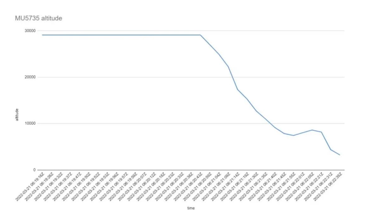 在最开始的时候,我们还没有非常详细的数据,但是通过ADS-B给出的数据,我们也一定程度上可以分析飞机的驾驶状况,并由此看到了飞机坠落过程中有一个明显的拉起动作,甚至一度从7425英尺拉起到8600英尺,甚至到了最后一刻,飞机的下坠也有放缓趋势。