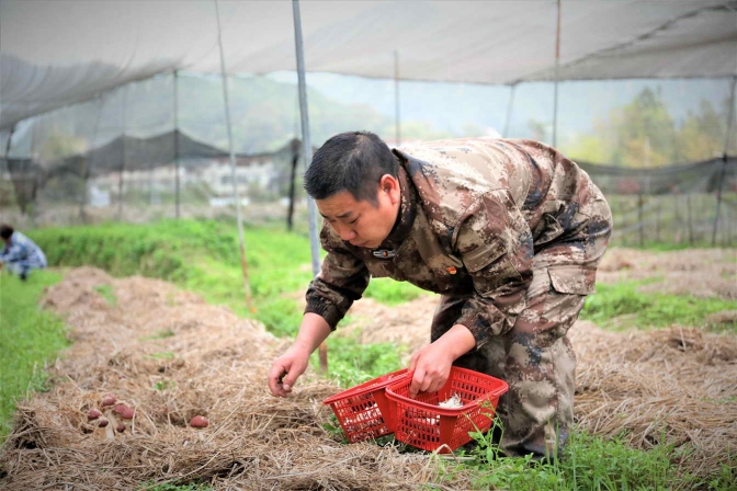 “我们每天分两个时间段采摘,从早上七点和下午五点开始,一天下来可以采摘两百多斤。”谭利明蹲在田边,捏紧根部,轻轻一拧,胖乎乎的红松茸就顺利地从地上剥离:“自从基地试种的5亩红松茸取得成功,大家信心倍增,干劲十足,再忙也值得。”