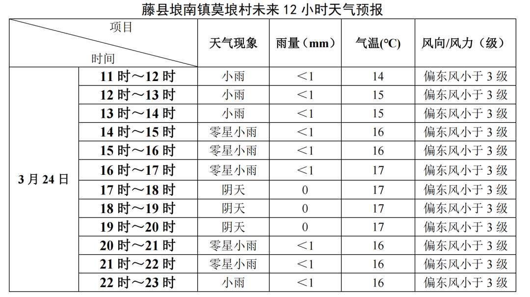 莫埌村未来12小时天气预报。(来源:广西壮族自治区气象局)