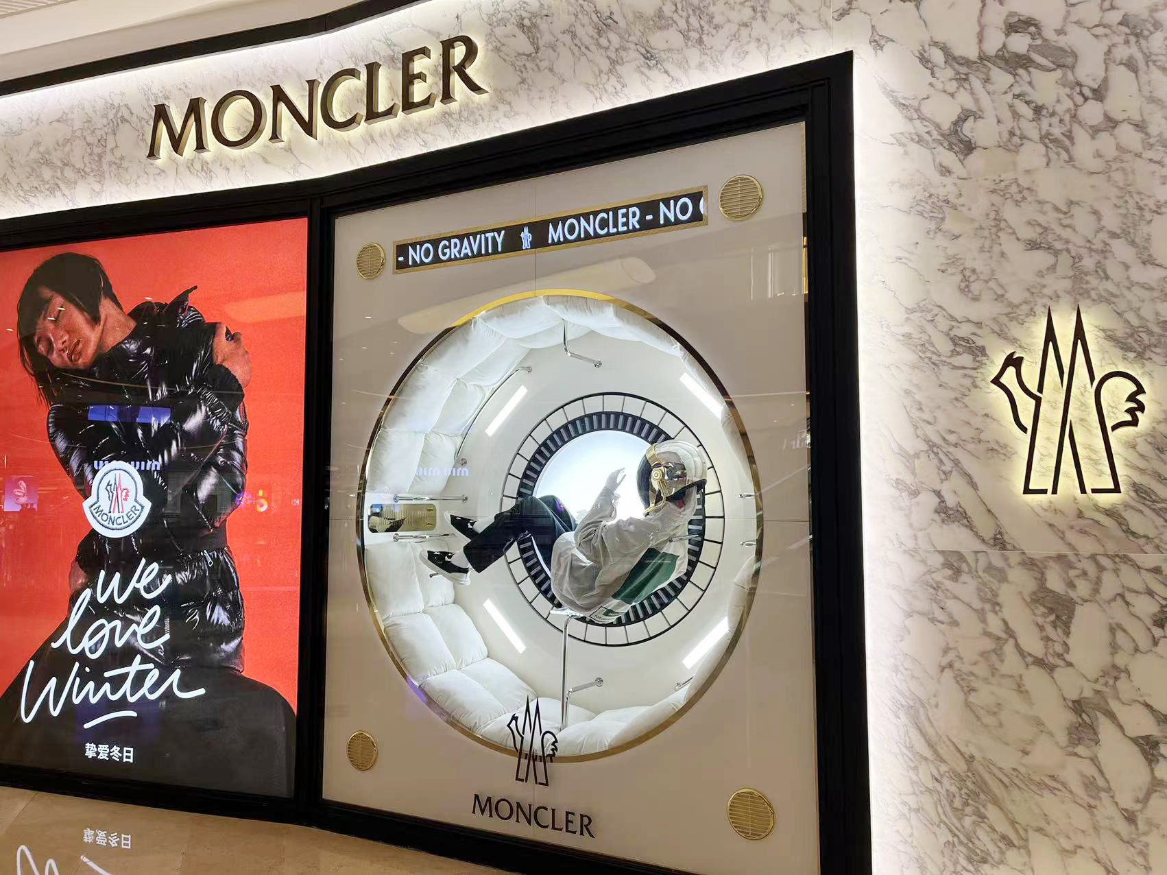 MONCLER的橱窗设置了悬浮半空的“太空人”。