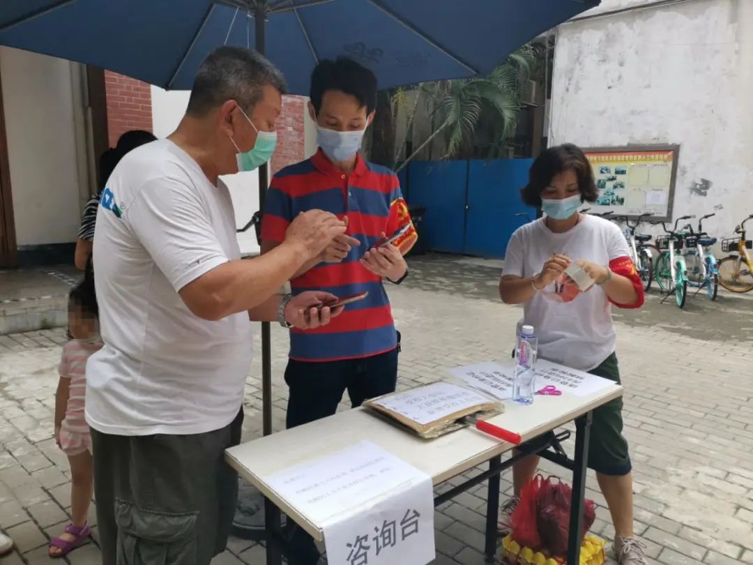 核酸检测现场,王周亮(中)指引居民填写信息。