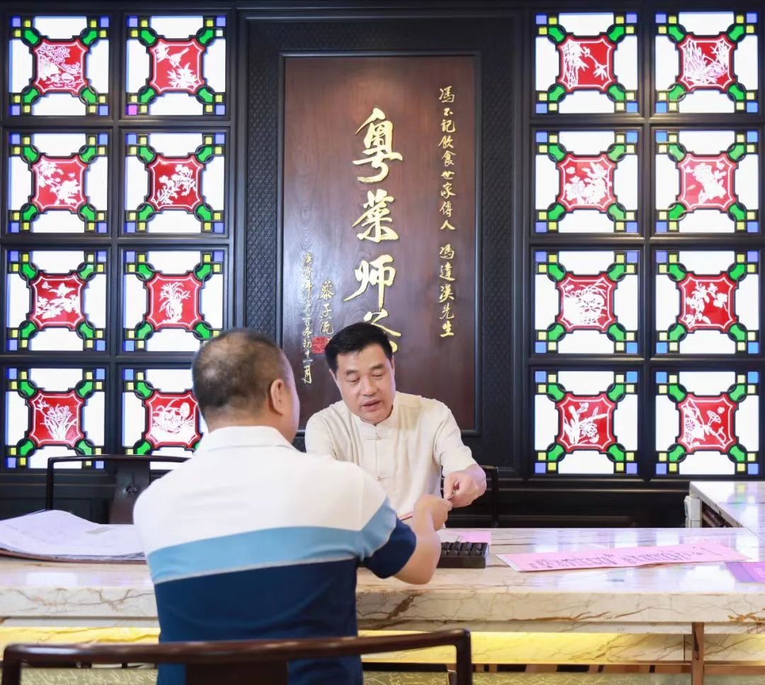 “粤菜师爷”冯达汉与顾客商定宴席菜式