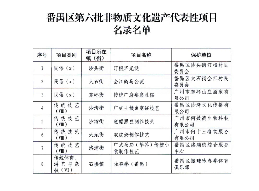 日前,广州市番禺区人民政府公布了番禺区第六批非物质文化遗产代表性项目名录名单。本批次代表性项目名录涵盖民俗、传统技艺和传统体育、游艺与杂技三个大类,截至目前,全区共有47项非遗代表性项目名录。