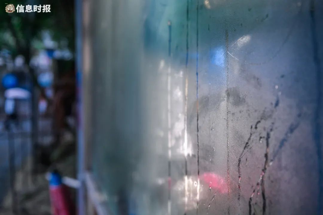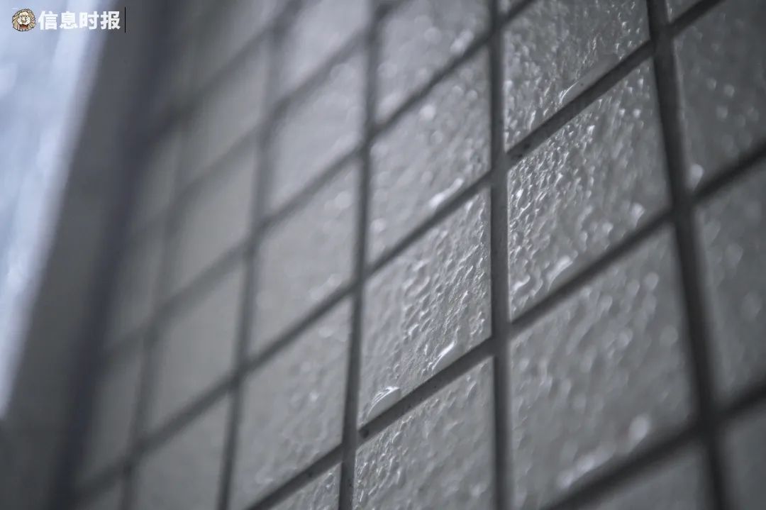 外墙、窗户上面的水珠。信息时报记者 胡瀛斌 摄