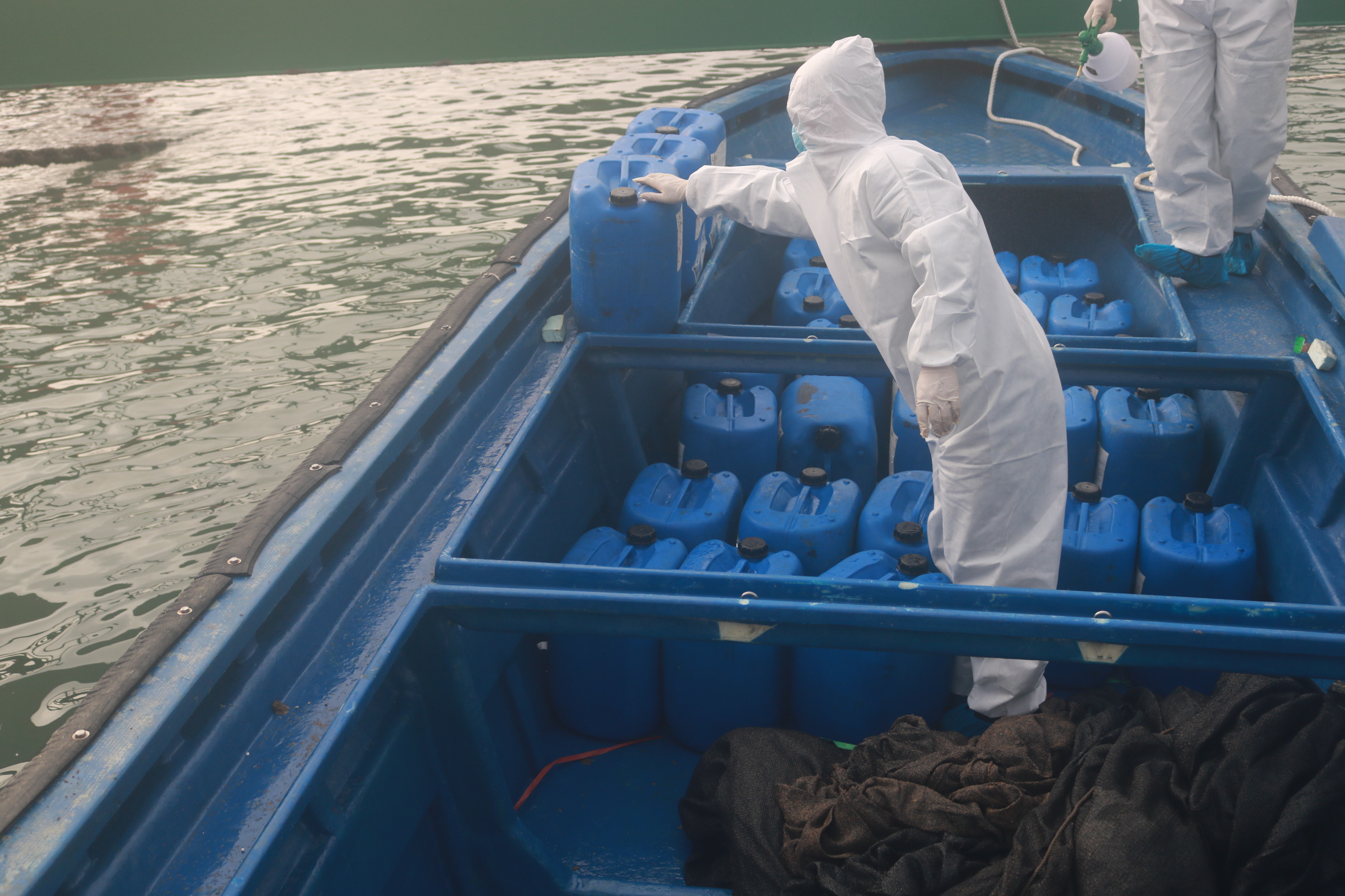 记者3月28日从广东海警局获悉,3月13日晚,广东湛江海警局根据线报指引,在雷州市大唐电厂附近海域查获一艘“大飞”快艇,艇上载有大量空汽油桶,随艇未找到任何船舶证书及货物单据。