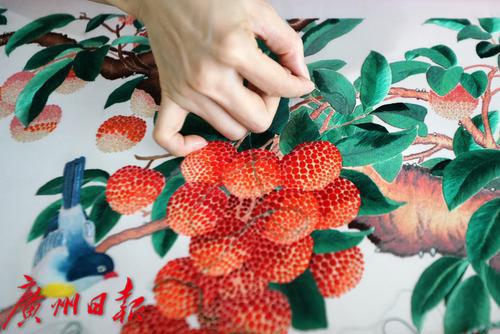 2022年3月22日,广绣构图饱满,色彩斑斓,具有浓郁的岭南色彩。