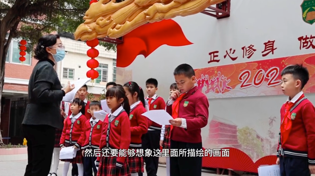 “《广州塔赋》中有许多典故,如何让学生去理解文本内容,想象作品所描绘的画面,是一大困难。”朝天小学老师黄艺颖是该校粤语讲古艺术团团长,在语文教学之外还教孩子们粤语讲古。在准备《广州塔赋》MV拍摄的过程中,她一直带着孩子们反复练习诵读,纠正发音,现场排练。