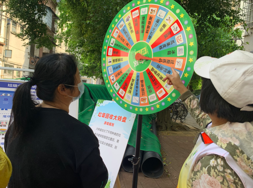 在活动现场,社区志愿者们以垃圾分类互动游戏形式,通过垃圾分类研究所、环保大灌篮、趣味转盘这些趣味性高、集教学与娱乐于一身的小游戏,帮助社区居民在趣味体验中深化垃圾分类理念,在潜移默化中养成垃圾分类习惯。现场设有垃圾分类宣传展板,志愿者们现场进行知识讲解,倡导居民从自身做起、从点滴做起。