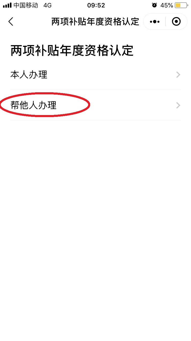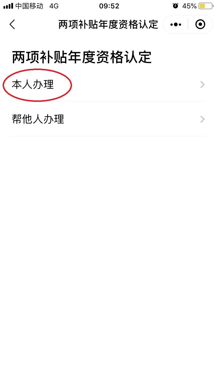 3.两项补贴年度资格认定可选择“本人办理”或“帮他人办理”。