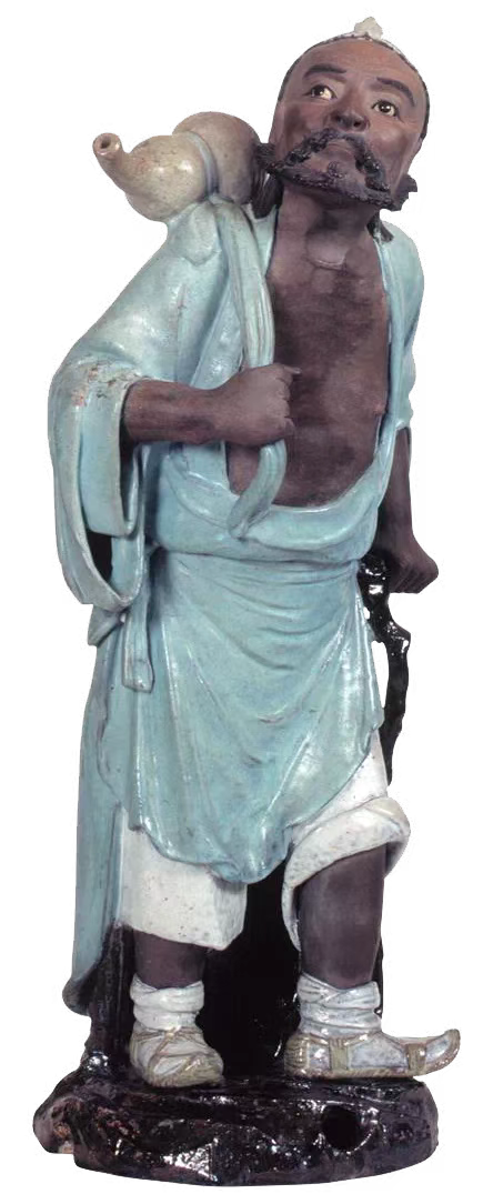 陶瓷艺人习惯用各种色釉作人物陶塑的服饰,以不上釉的陶胎表达塑像脸部及手部肤色质感的细腻效果,成功地刻画出陶塑人物的神韵。传统的人物陶塑形象大部分取材自民间传说、戏曲或小说。