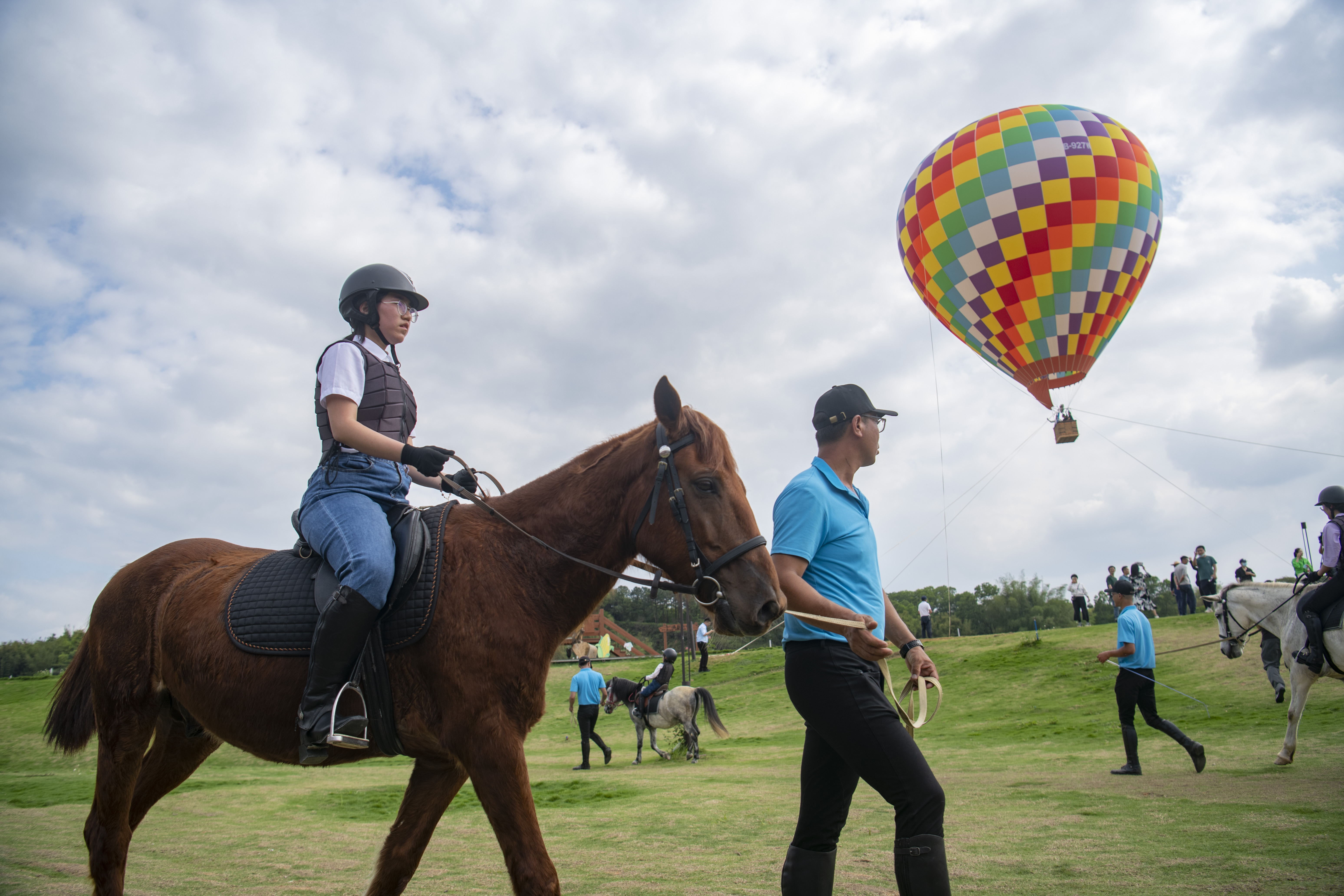 在这里,游客不仅可以到“红色幸福号”小火车拍照打卡,还可以骑马感受自由的感觉,还能坐上鲜艳的热气球,从高空俯瞰迳下村的田园风光,或者在觅菜园里采摘蔬果,体验一番返璞归真的农耕生活。