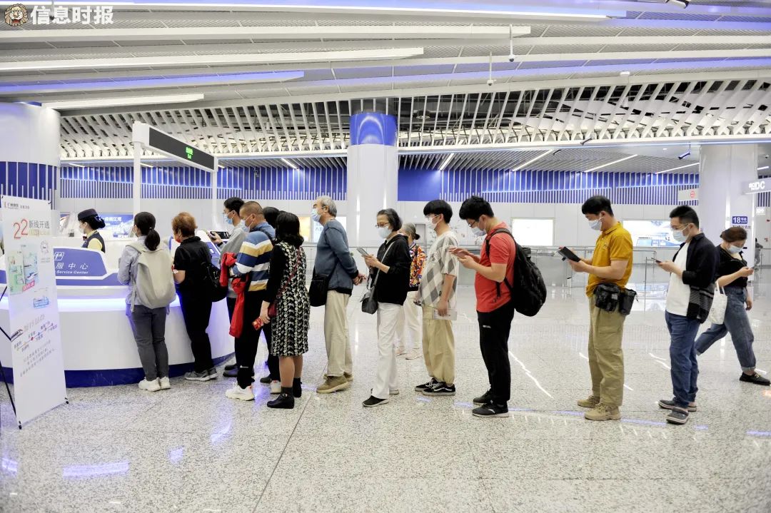 市民在22号线爱心服务点排队咨询。信息时报记者 郭柯堂 摄