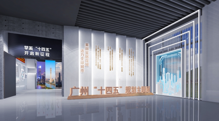 这是广州“十四五”规划主题展现场。该展览由广州市政府主办、广州市发改委承办、广州日报报业集团策展,设创新之城、实力之城、枢纽之城、机遇之城、智慧之城、品质之城等展厅,通过可听、可视、可玩、可互动的手段展示广州迈向2035年的目标:美丽宜居花城,活力全球城市。
