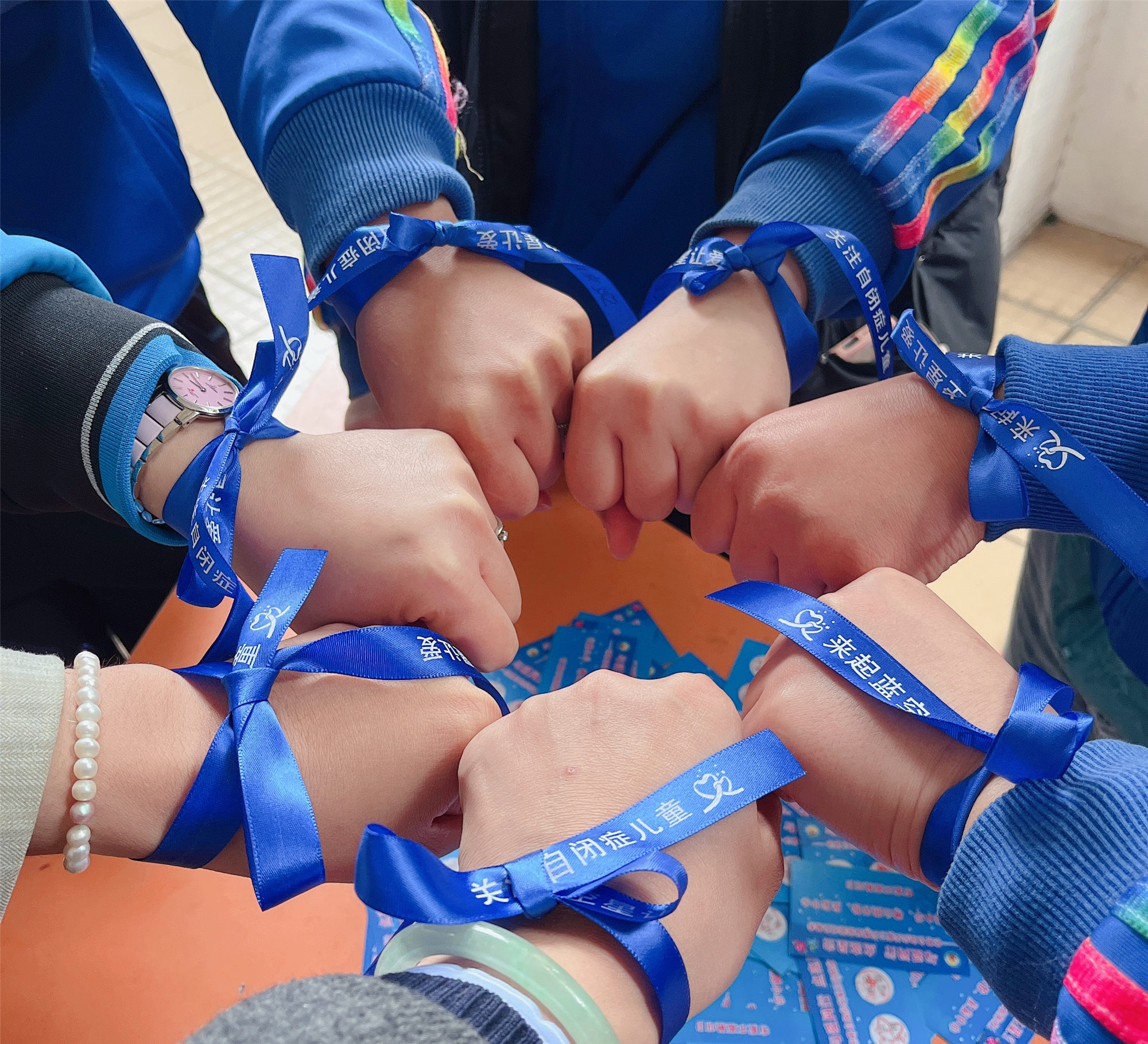 云路小学教师戴上蓝丝带为孤独症孩子加油