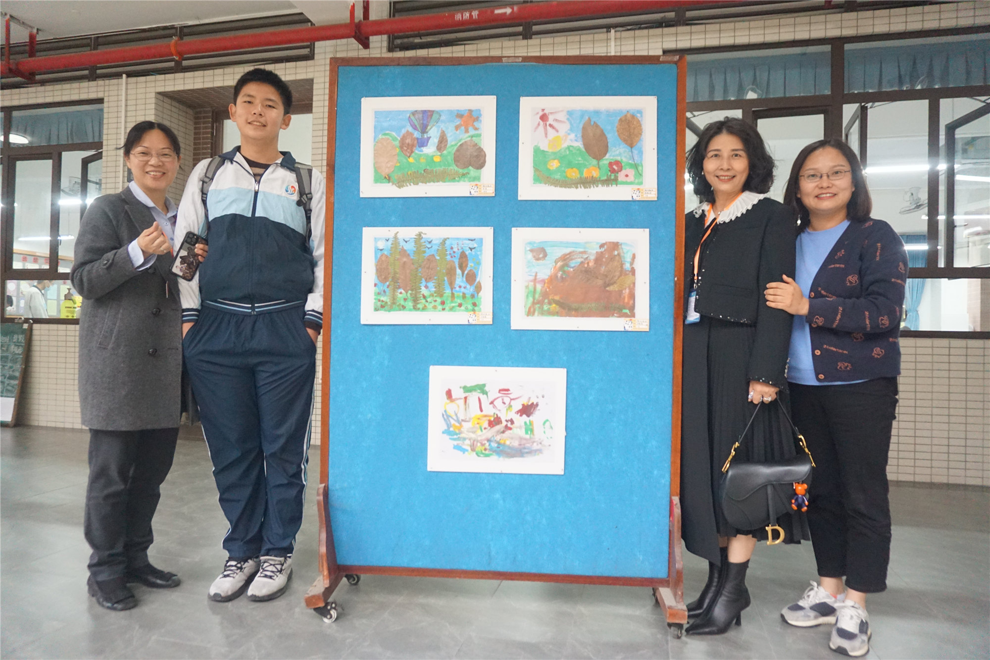 宸宸(左二)和妈妈(右二)、马老师(右一)