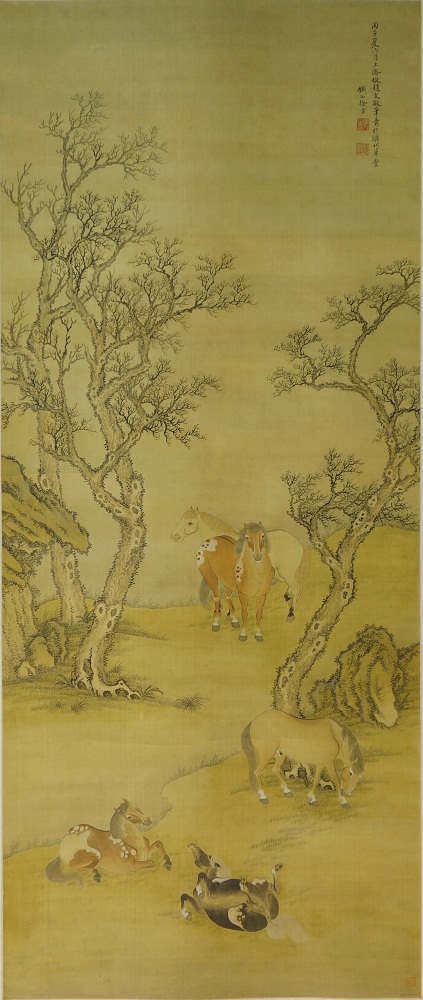不同姿态的马也有多件。岭南地域明末清初画马名家张穆(1805-1849),清代徐方(生卒年不详),近代徐悲鸿(1895-1953),他们的马姿态各异,各有千秋。有的描绘出了马的健硕之美,而有的更关注马的骨干瘦硬;有的描绘的是斗志昂扬、奔跑向上的骏瘦之马,有的却是悠闲自在,唯美静谧的马。