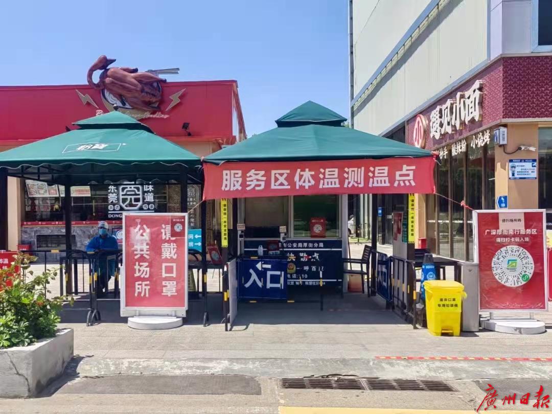 揭博高速瓦溪服务区服务楼测温点落实4个100%防控要求。