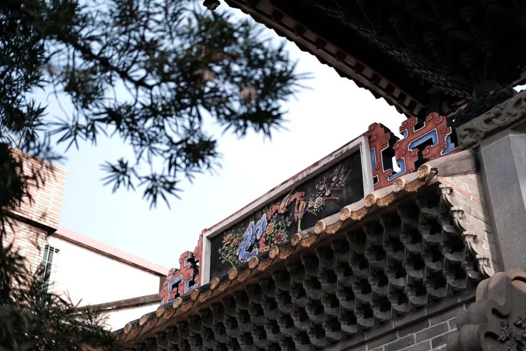 次间墙壁为通透的砖雕花窗,在众多牌坊中别具一格。基座的立面也是精美的石雕。牌坊两边有砖砌高墙连接,各开有一拱形门洞,东门石额刻“入孝”,西门刻“出弟”善世堂仪门还有一对砖雕花窗,美轮美奂,又有另一番韵味。