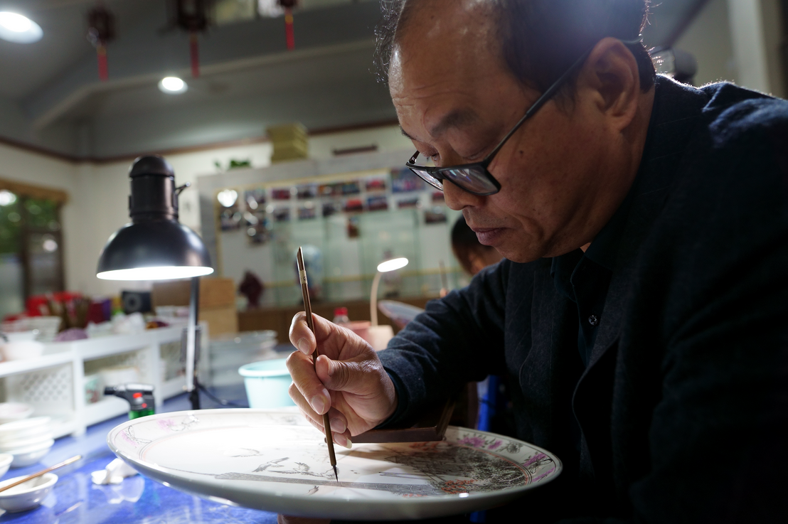 现在,除了定制作品外,广彩大师更多的是制作茶杯、餐盘等日用器皿。他们更希望广彩走入寻常百姓家,这样才不会使这门百年技艺消失。