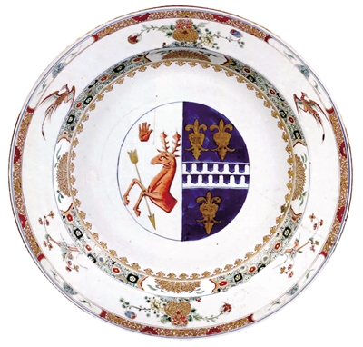 广州十三行纹大碗,直径40厘米,约制作于1785年。(引自《销往荷兰的中国纹章彩瓷》)