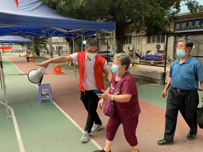 党员志愿者主动承担起维持采样点秩序的责任,引导群众戴好口罩,有序高效地完成采样过程,耐心解答群众的困惑。