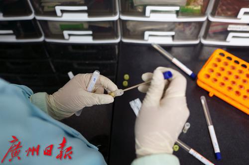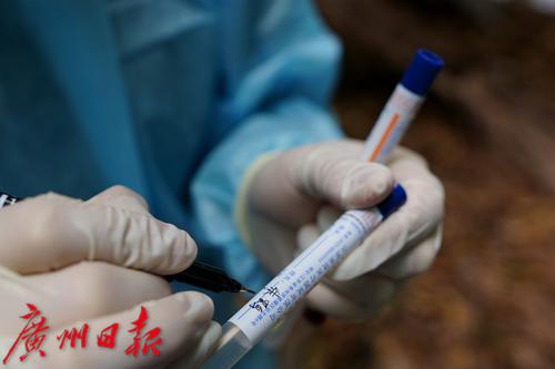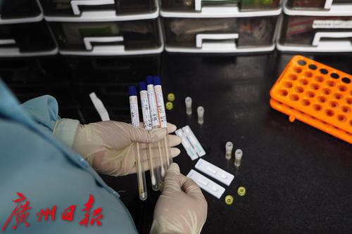 动物医生在核对今日取样的试管。