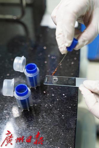 动物医生在对取样的试管进行处理。
