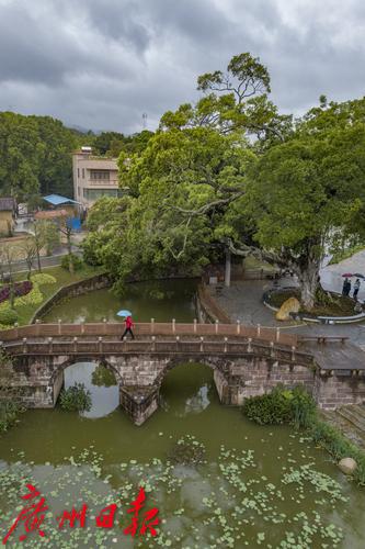 黄埔区莲塘村村头的大榕树下摆开几张方桌,大家坐在绿荫下,望着古村围绕“十古”谈保护。所谓“十古”,即古村、古树、古屋、古庙、古巷、古道、古塔、古井、古桥、古码头等十类古遗存。在黄埔区701处十类古遗存当中,莲塘村的古遗存占了36处。莲塘村是中国传统村落、广东省历史文化名村,村里的大祠堂显示了莲塘村古老的内涵。时四陈公祠建于1899年,2013年重修,修旧如旧,仍保留着古风古韵。