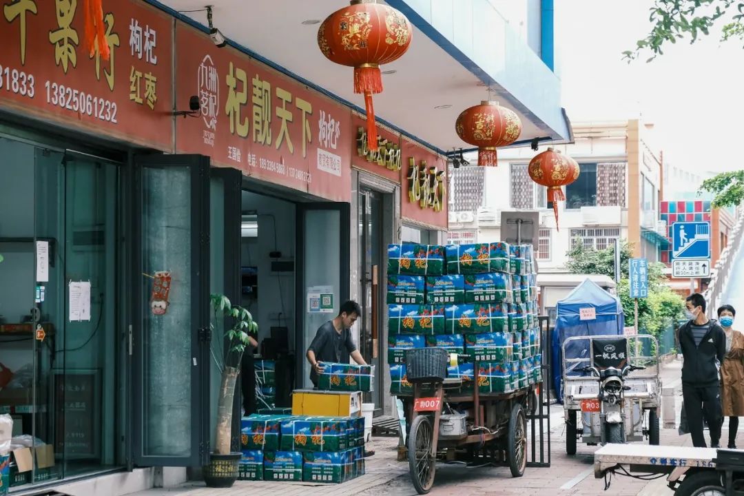 因为有如意干果市场、星洲源如意果品市场等大型批发市场,如意坊一带的车流密集,即便是下雨天,也能见到人们拉着手推车、开着小货车忙碌奔波。